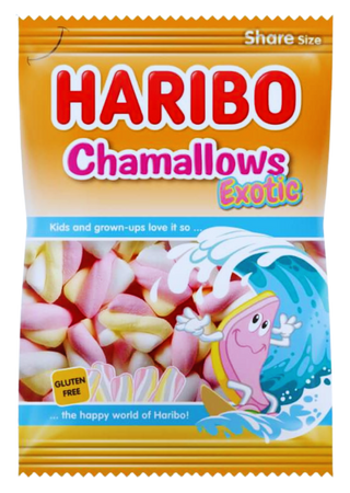 Haribo Chamallows Exotic to lekkie, puszyste pianki o wyjątkowo egzotycznym, owocowym smaku. Delikatne, miękkie i aromatyczne - idealnie sprawdzają się jako słodka przekąska, do deserów, dekoracji ciast, czy po prostu do podjadania prosto z opakowania. Ich tropikalny charakter wyróżnia je na tle klasycznych pianek, a bezglutenowa formuła sprawia, że są odpowiednie dla jeszcze większej liczby osób.