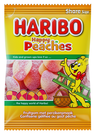 Haribo Happy Peaches to miękkie, aromatyczne żelki o intensywnym smaku soczystej brzoskwini. Każdy kawałek jest delikatnie posypany cukrem, co dodaje mu przyjemnej chrupkości i podkreśla owocową słodycz. Żelki zachwycają zarówno zapachem, jak i smakiem, przypominając świeże, dojrzałe brzoskwinie. Klasyk Haribo uwielbiany przez fanów owocowych słodyczy.