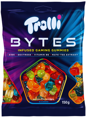 Trolli Bytes zostały stworzone specjalnie dla graczy i fanów owocowych żelków. Intensywnie kolorowe, błyszczące i o oryginalnych kształtach inspirowanych symbolami z gier. Każda paczka kryje 5 wyjątkowych, orzeźwiających smaków: ananas-grejpfrut, pomarańcza-mandarynka, jagoda, malina-granat, limonka-cytryna. Te żelki z pewnością dostarczą Ci radości i energii.